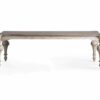 Diese exquisite Esstischserie wird aus massivem Holz gefertigt. Jede handbearbeitete Oberfläche wird kunstvoll gestaltet und umfasst Schichten von Beize, Farbe und Lack, die mit sorgfältigen Pinselstrichen aufgetragen werden – ein Prozess, der mehr als drei Tage dauert, um jedes einzelne Stück abzuschließen.